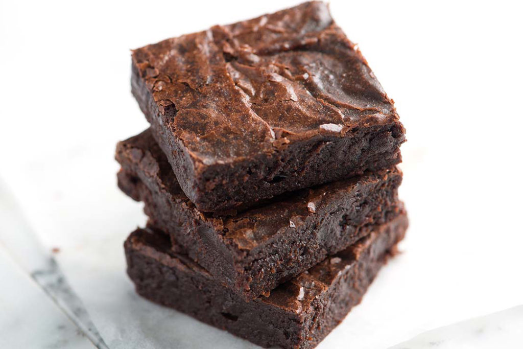 - Verwijder de brownies voorzichtig uit de vorm, snijd ze in vierkantjes of rechthoeken en serveer.