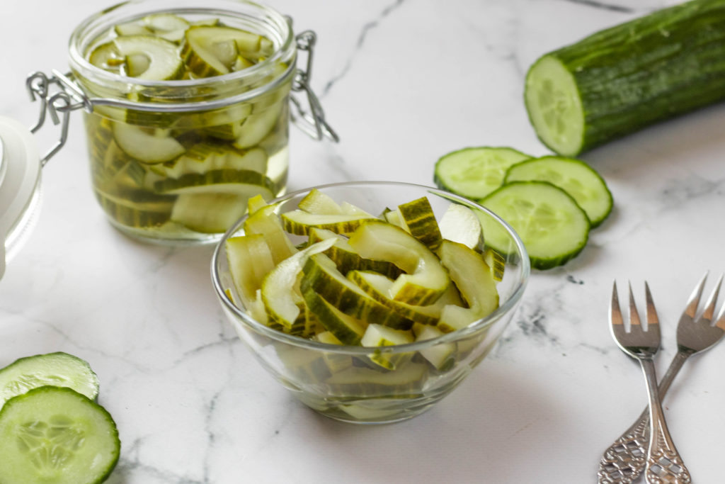 - Het komkommerzuurtje is nu klaar om te serveren, maar voor de beste smaak laat je het minstens 2 tot 3 uur staan. Het is zelfs nog lekkerder als je het een hele nacht laat marineren.