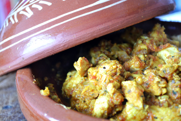 - Zet de deksel op de tajine en draai het vuur laag. Laat het gerecht in circa een halfuur garen. Als je meer of grotere stukken kip gebruikt, laat de tajine dan zeker een uur op het vuur staan.