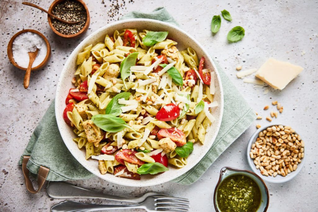 Penne met kip en groene pesto