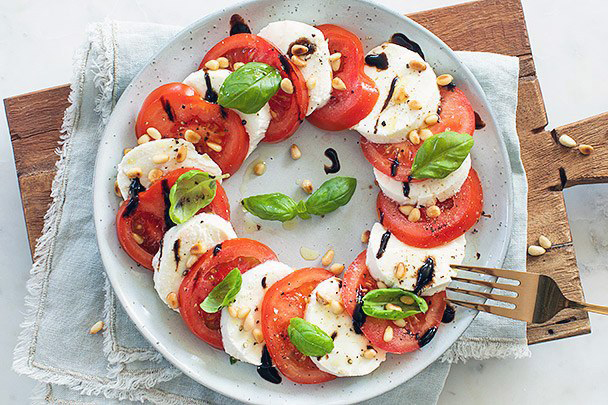 Salata Caprese met rode pepers