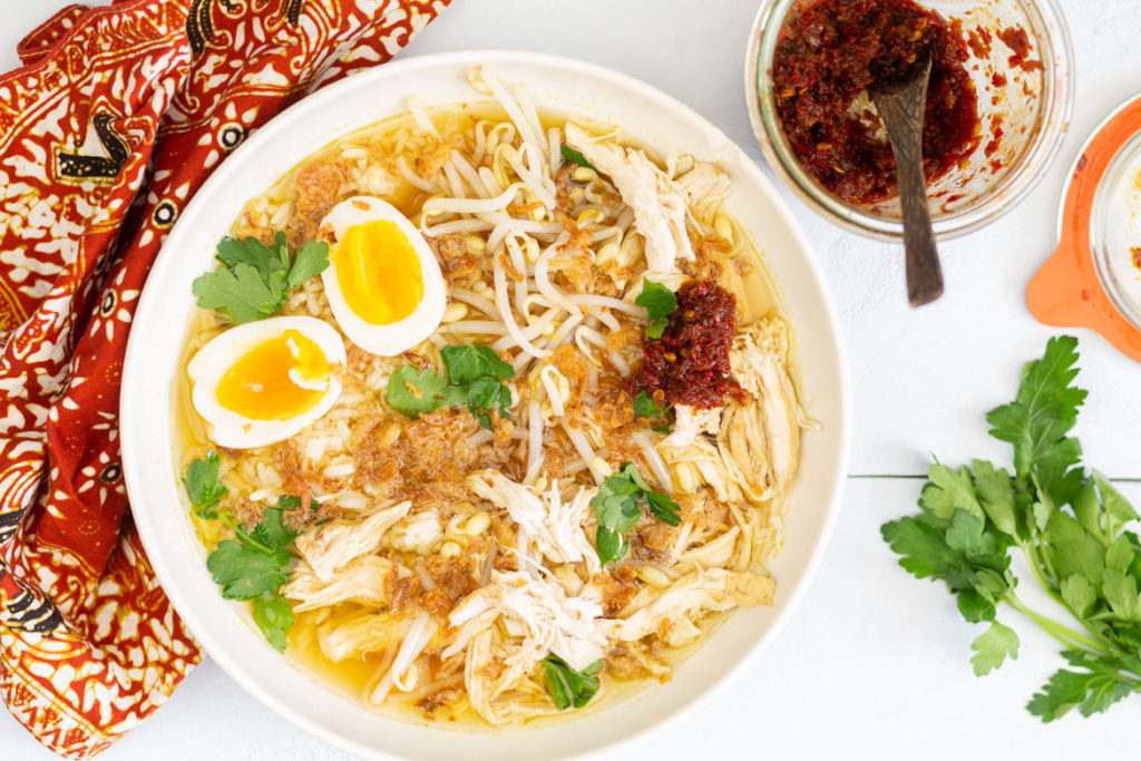 - Voeg ¼ blik kokosmelk toe en breng eventueel verder op smaak met vé-tsin, extra kippenbouillonblokjes en citroensap. Zet vervolgens het vuur uit. Verwarm de soep pas weer wanneer deze geserveerd wordt.